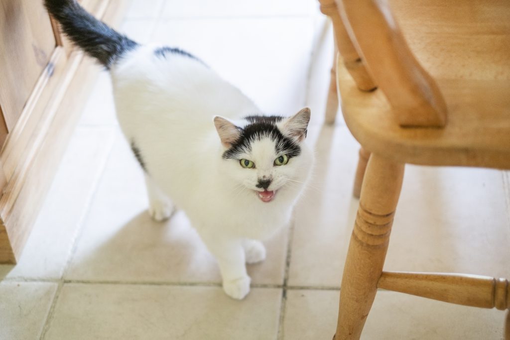 ごはん皿の前やドアの前でサイレントニャーをしているなら、何かを要求している可能性があります。 状況に合わせて、ごはんの準備をしたり、ドアを開けてあげたりするのも良いでしょう。